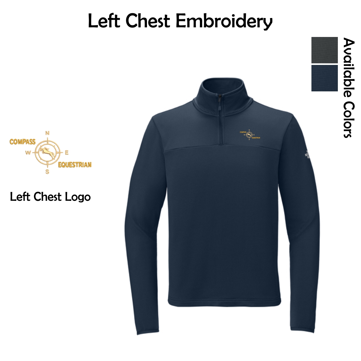 - Contrast heat transfer The North Face logo on left sleeve and right back shoulder
