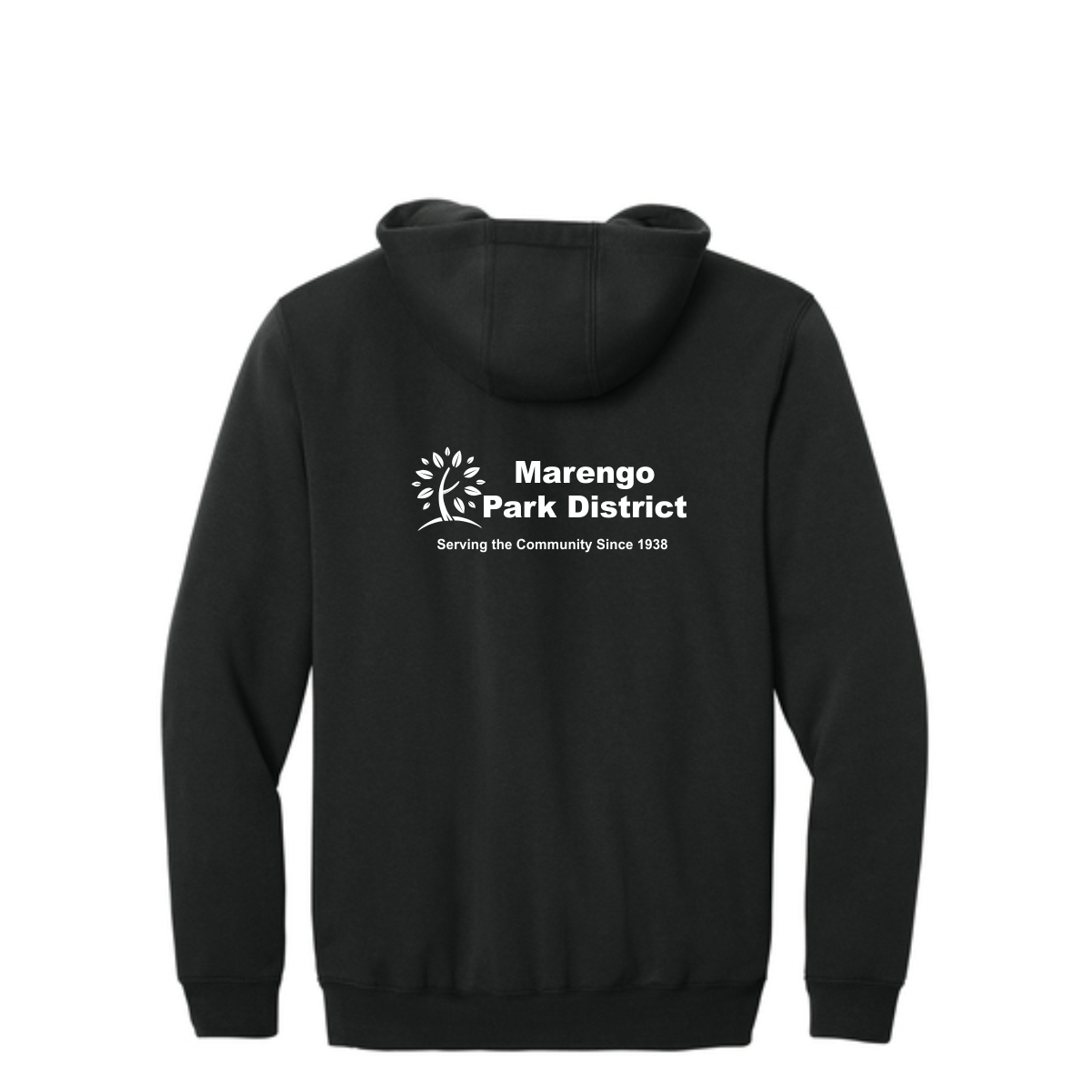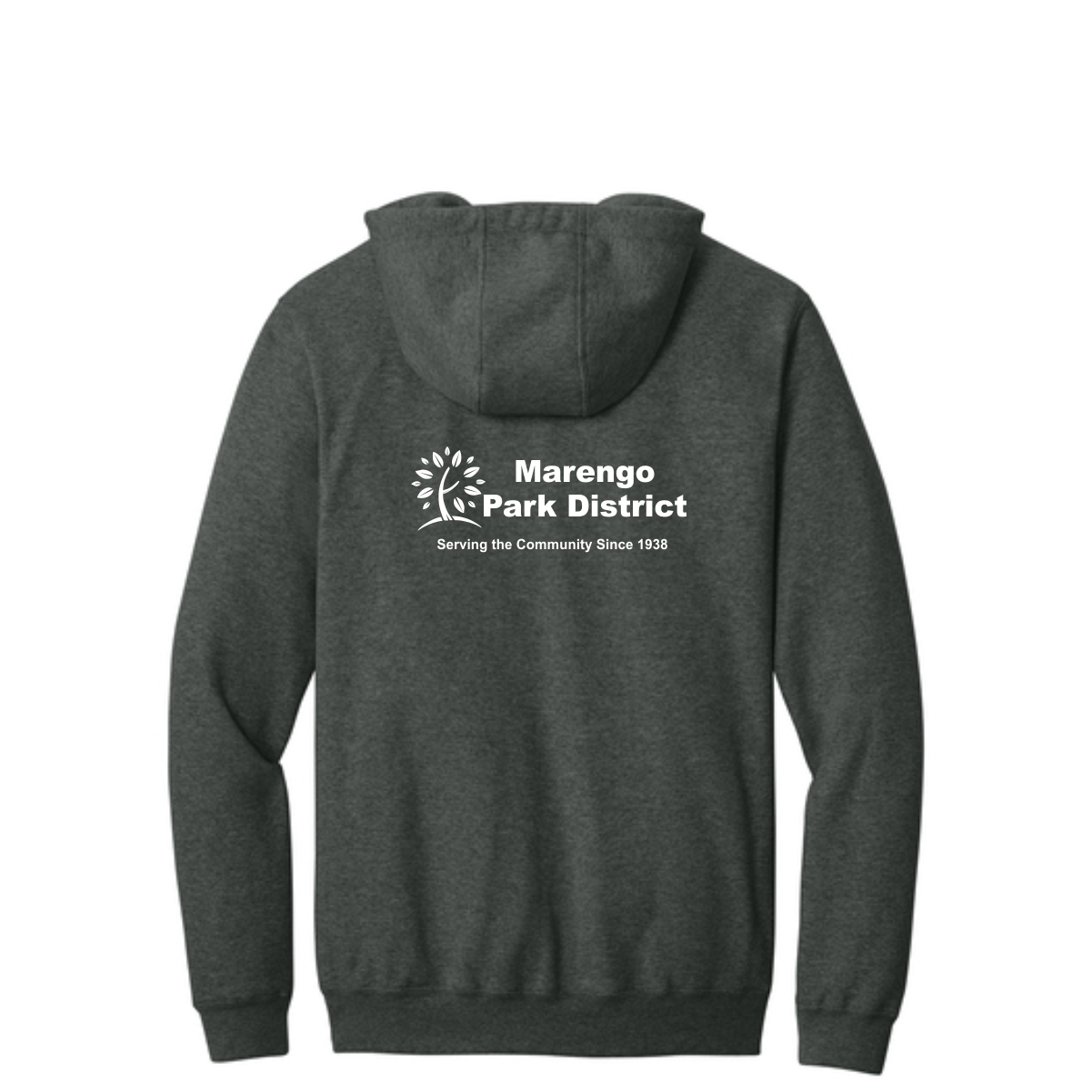 - Attached three-piece hood with drawcord closure