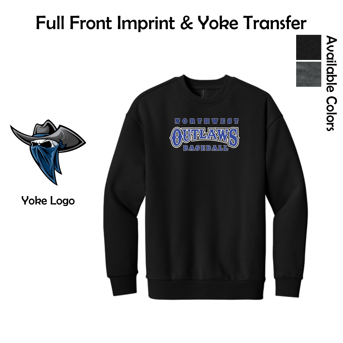 Northwest Outlaws Baseball Adult District Heavyweight Fleece Crew (Oversized fit)
