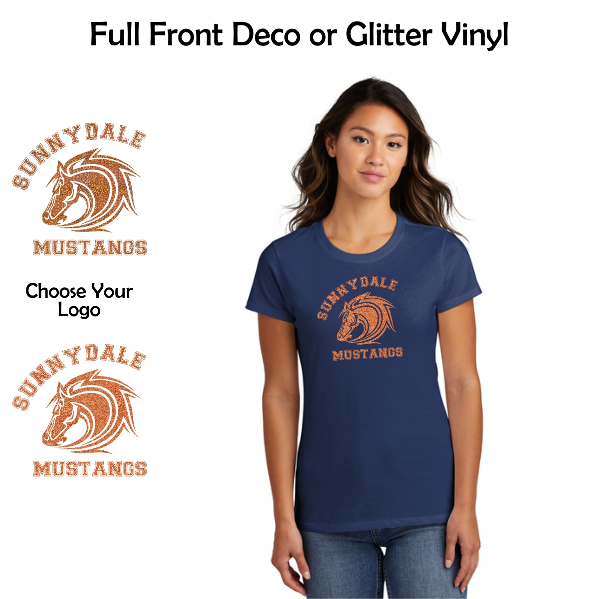 Sunnydale Elementary Spiritwear Ladies Tee with Deco or Glitter Vinyl